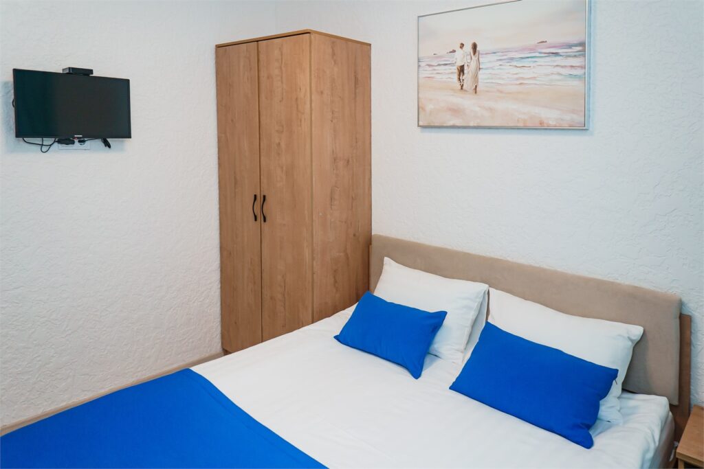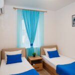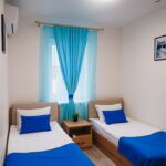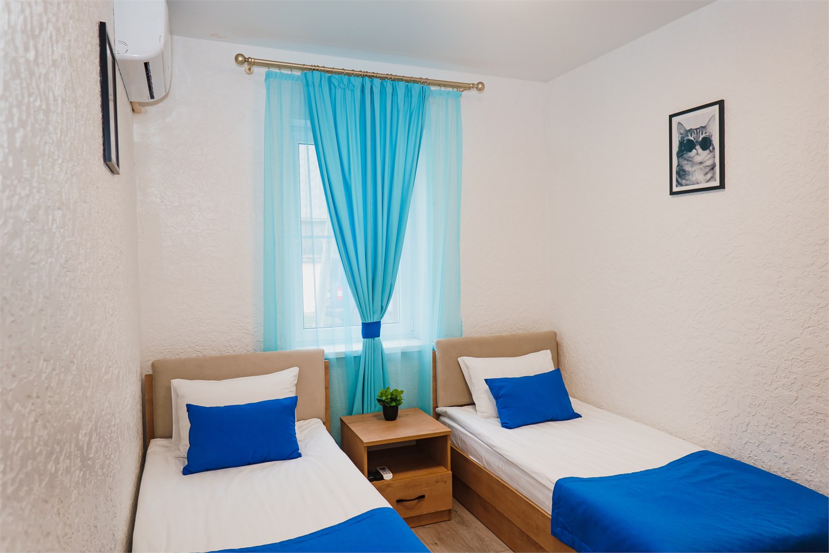 Номера оснащены современной мебелью, кондиционером, холодильником, ТВ. В каждом номере имеется собственный санузел с душем. Для каждого гостя мы предоставляем комплект полотенец, косметические наборы для душа, одноразовые тапочки. В номерах могут комфортно размещаться, самым маленьким нашим гостям мы готовы предоставить кровати-манежи для комфортного сна.