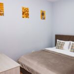 Номера оснащены современной мебелью, кондиционером, холодильником, ТВ. В каждом номере имеется собственный санузел с душем. Для каждого гостя мы предоставляем комплект полотенец, косметические наборы для душа, одноразовые тапочки. В номерах могут комфортно размещаться, самым маленьким нашим гостям мы готовы предоставить кровати-манежи для комфортного сна.