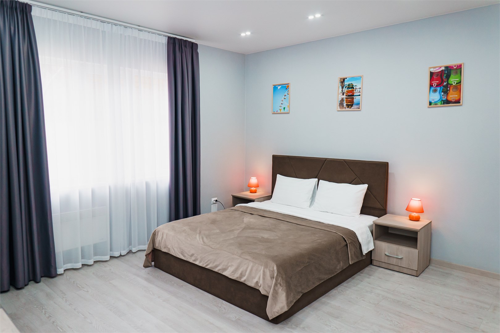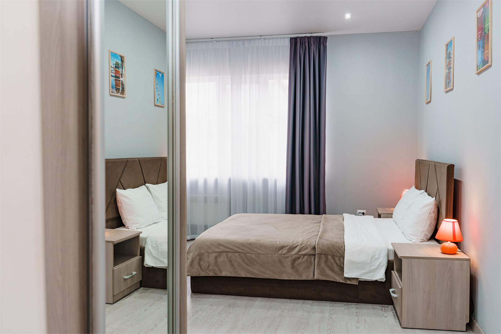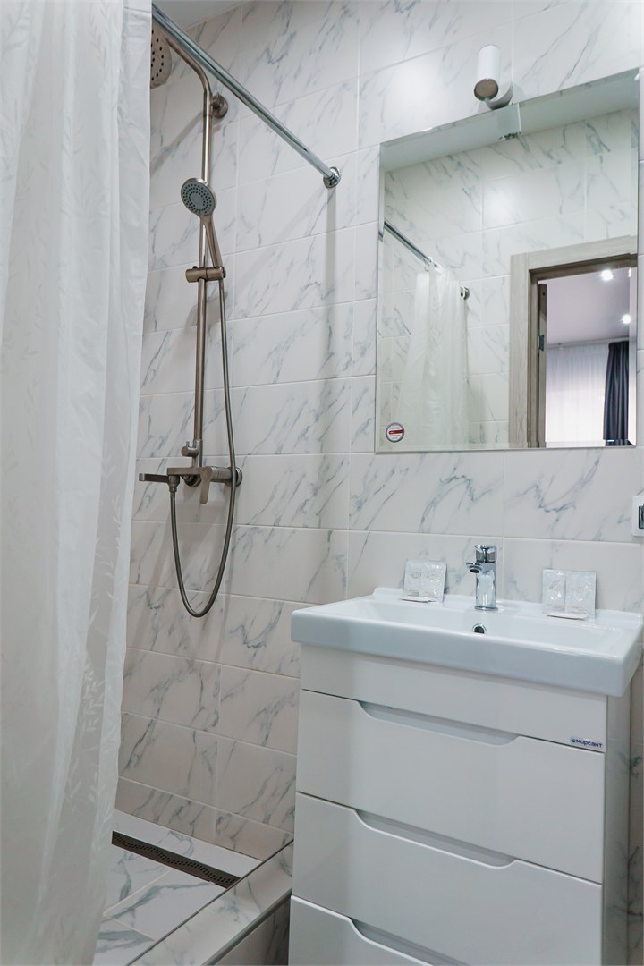 Номера оснащены современной мебелью, кондиционером, холодильником, ТВ. В каждом номере имеется собственный санузел с душем. Для каждого гостя мы предоставляем комплект полотенец, косметические наборы для душа, одноразовые тапочки. В номерах могут комфортно размещаться, самым маленьким нашим гостям мы готовы предоставить кровати-манежи для комфортного сна.